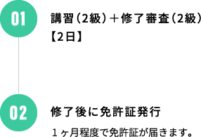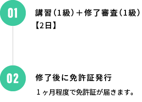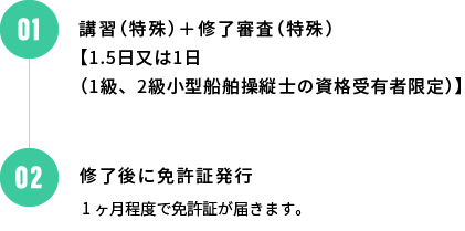 (例:2級小型船舶操縦士の資格受有者で1級進級コースをお申込みの場合)